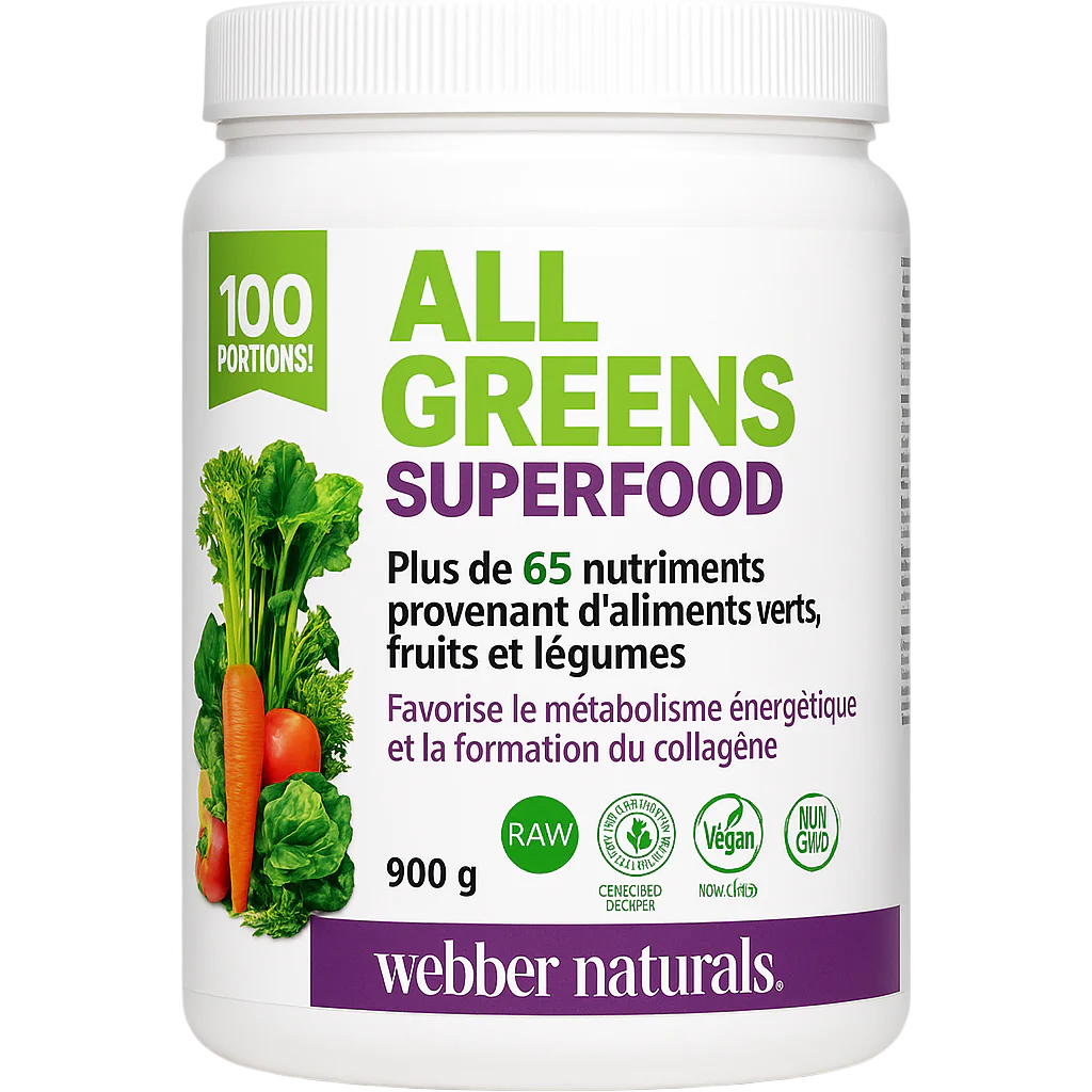 - Webber Naturals All Greens Superfood β 900 g (100 Servings) Webber Naturals All Greens Superfood β 900 g (100 Servings)